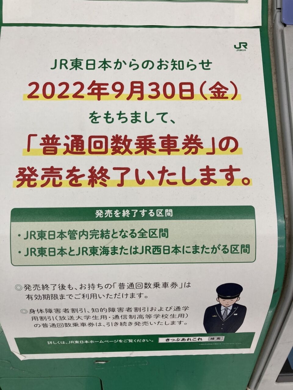 最後のJR東日本普通回数券を購入されたい方は、本日中にご購入を。