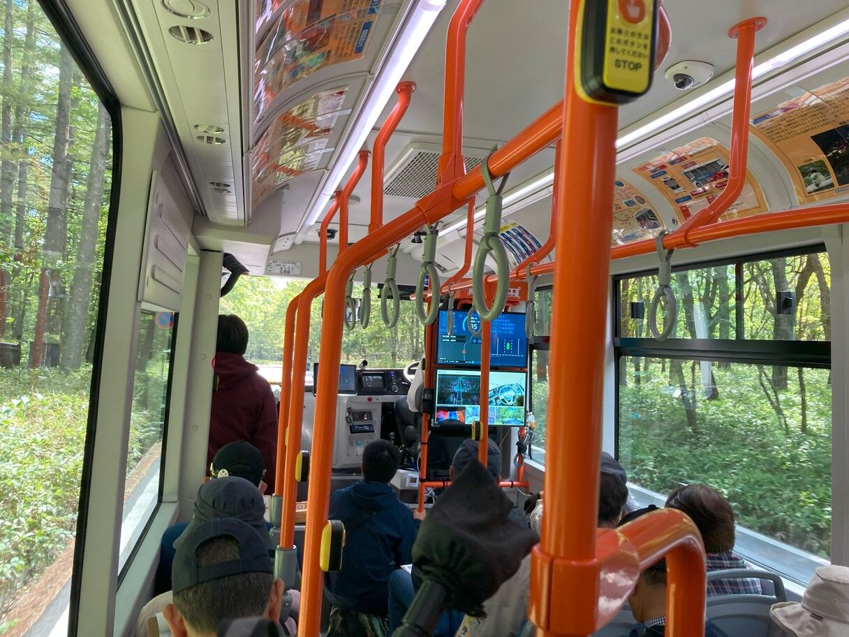 有人バスも運行していたのですが、皆さん自動運転バスに興味深々でバスは満席状態でした。