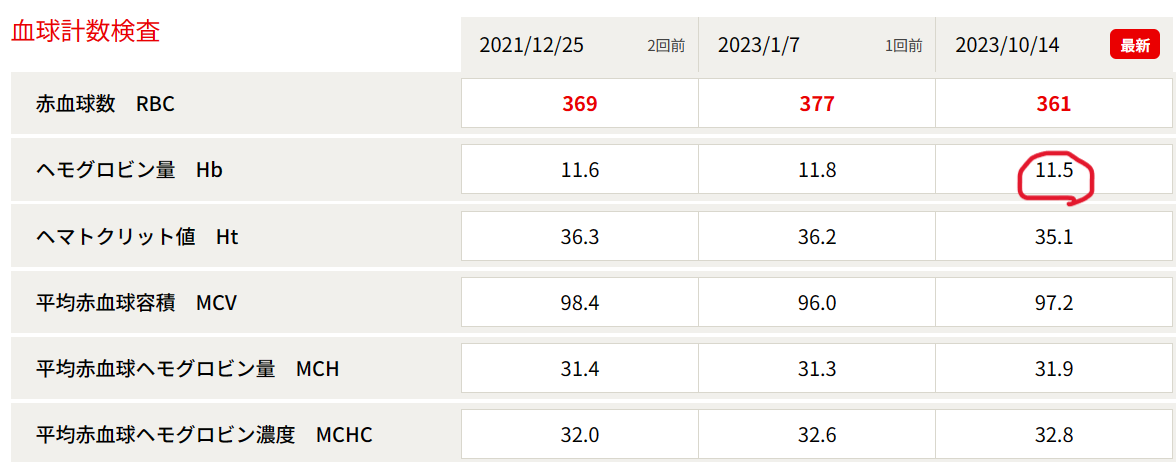 いつもここで成分献血のヘモグロビン基準値11.5g/dlが超えられるかどきどきします。