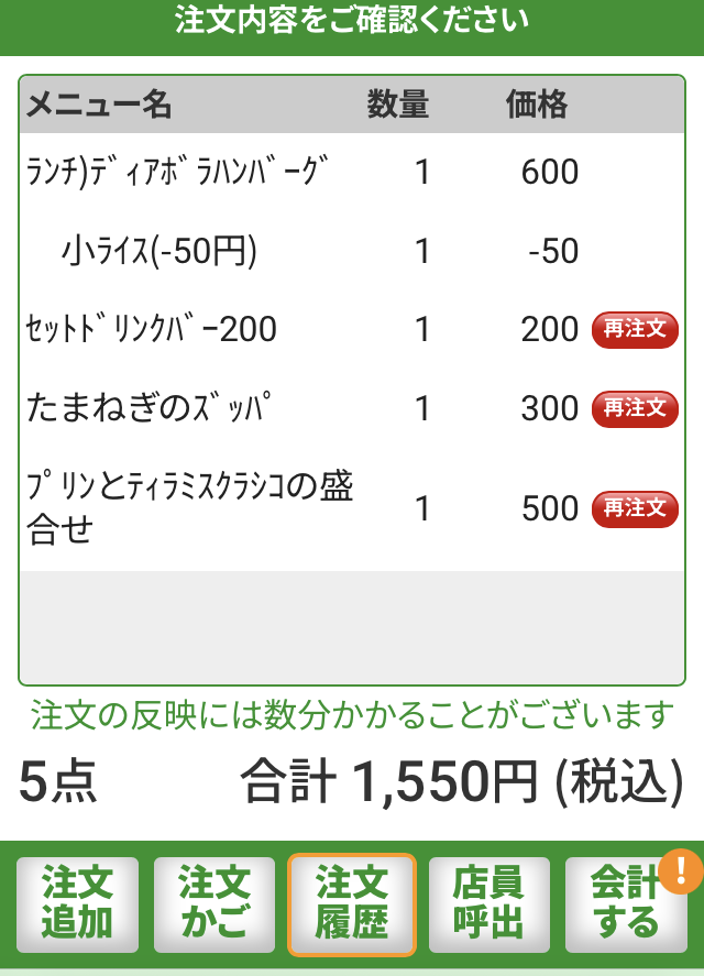お会計は税込み1,550円。