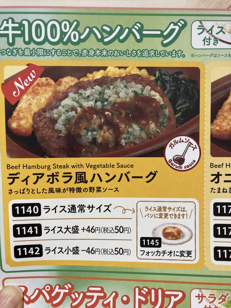 ランチハンバーグは2種類あったのですがディアボラ風を選びました。
