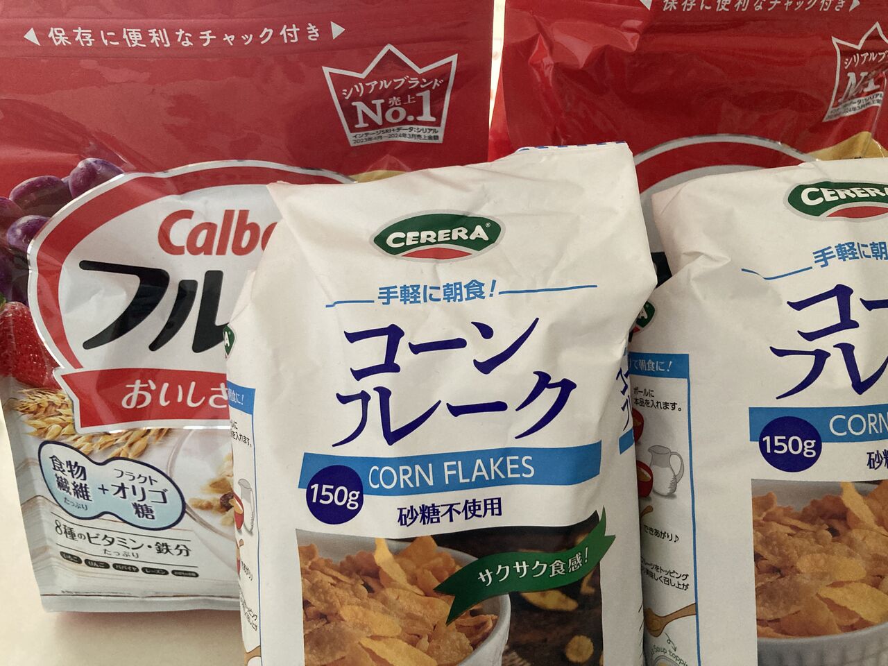 フルグラ700g入り2個と業務スーパーのシリアル2個をまとめ買い。