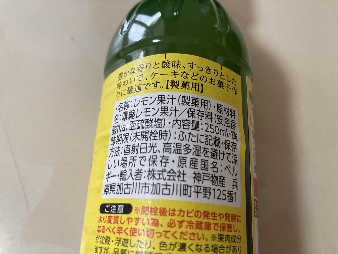レモン汁は業務スーパーで買ったお菓子用のレモン汁を使っています。
