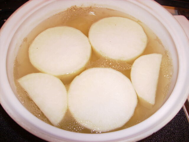 ふろふき大根は昨日の夜作ったので味が染みています。