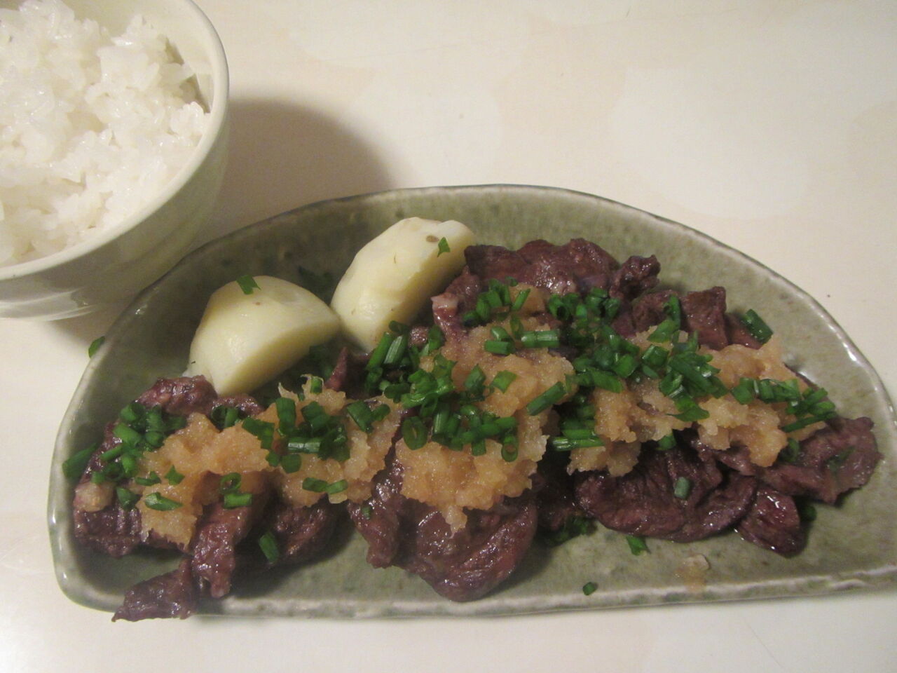 ロース肉とモモ肉をいただきましたが、今回はロース肉150gを使用して「和風おろしロースト」を作りました。