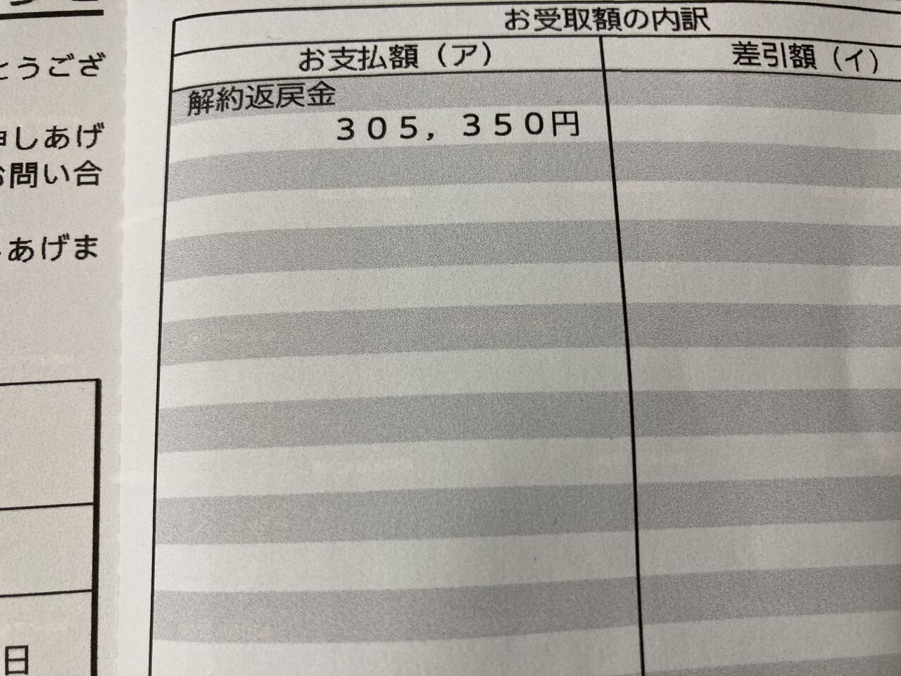 7年目で解約した自分の積立の解約返戻金は約30万5,350円。