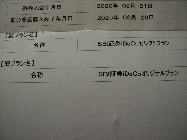 そんな中、昨年末頃実施したSBI証券の個人型401Kプラン変更が完了したとの通知が届きました。